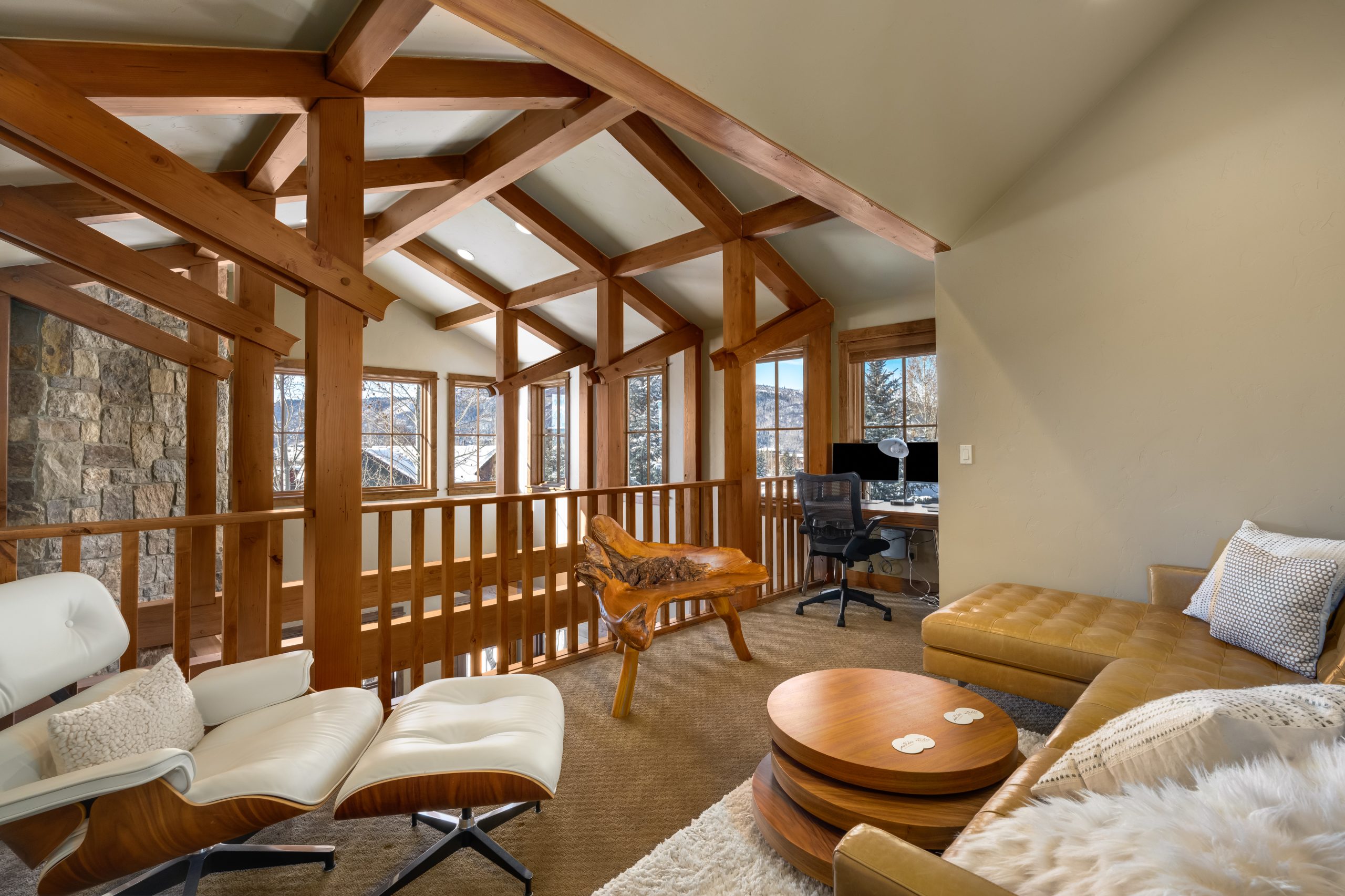 - Upstairs bedroom: You can accommodate one to two guests in an upstairs bedroom. The room includes a comfy bed surrounded by windows with stunning views and natural lighting. Enjoy an en suite bath and an adjoining loft with a secluded desk and office chair.